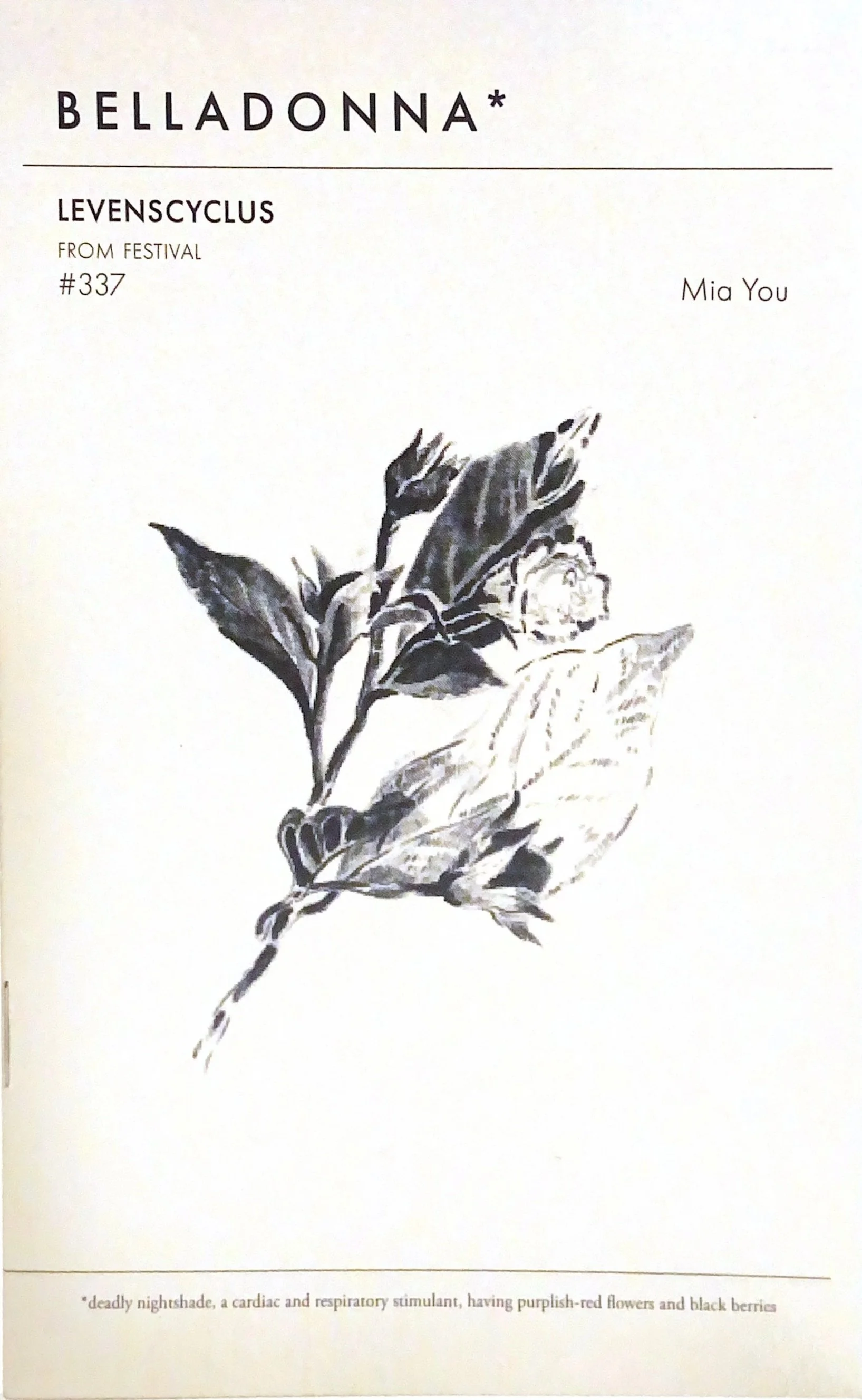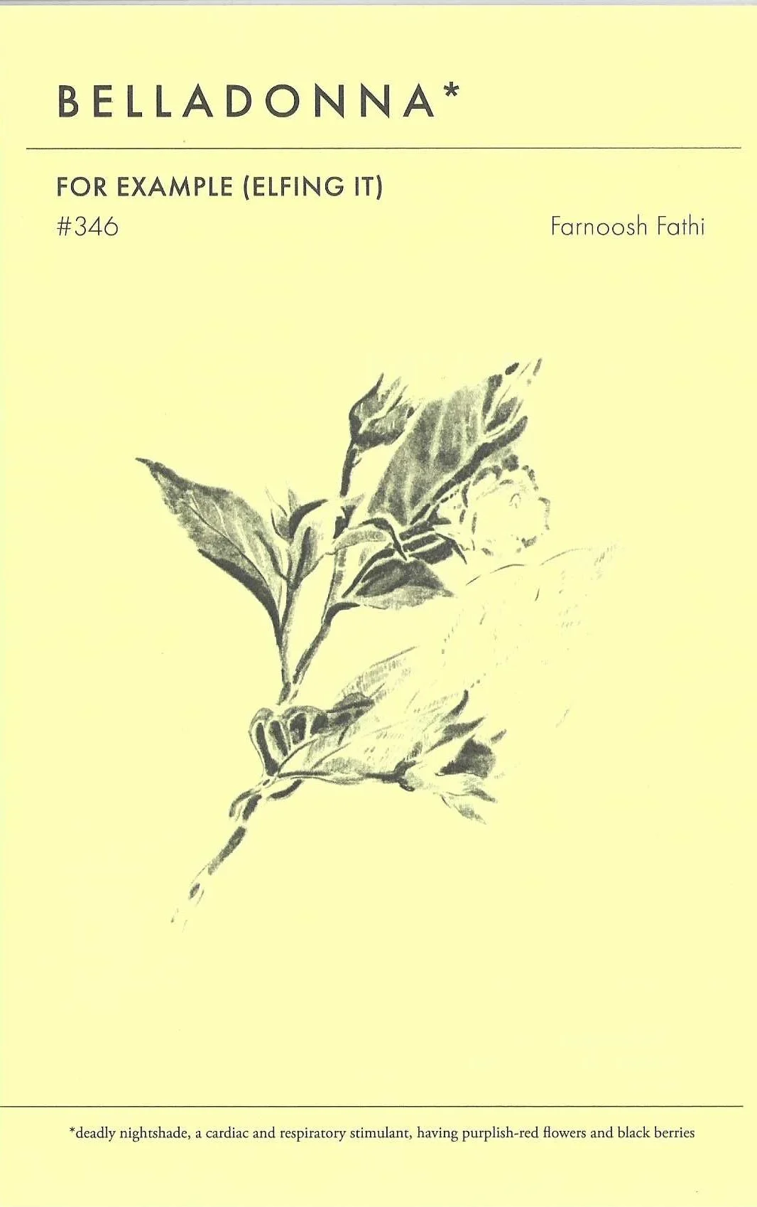 BELLADONNA* CHAPLETS are short, staple-bound pamphlets published in limited editions to coincide with the Belladonna* reading series, which presents women and feminist authors writing from the margins. Readers are invited to publish work that is unfinished, raw, or in-process, providing a window into writers’ processes and timely concerns. Begun in 2000, the chaplet series stands as a uniquely expansive and diverse archive of contemporary and experimental feminist writing.